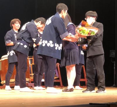 コンサートの後には、児童生徒代表が花束を渡したり、演奏の感想を交えてお礼の言葉を伝えたりして、感謝の気持ちをあらわしました。