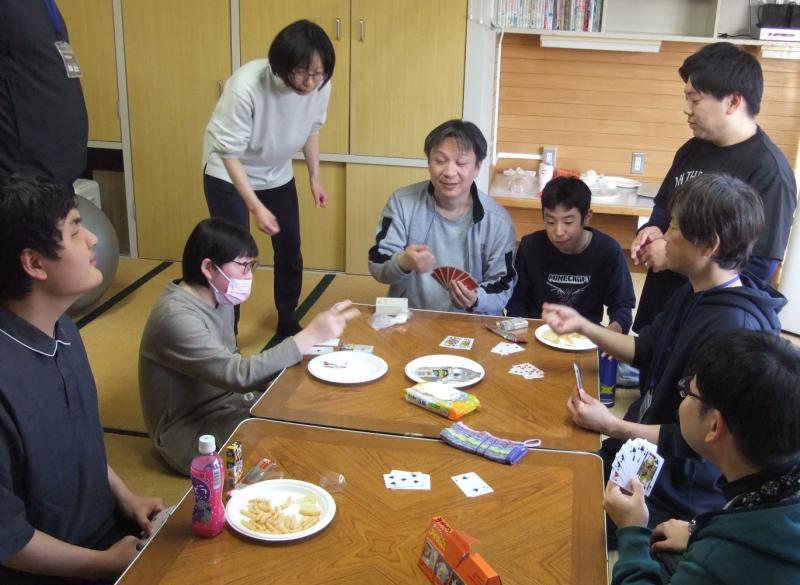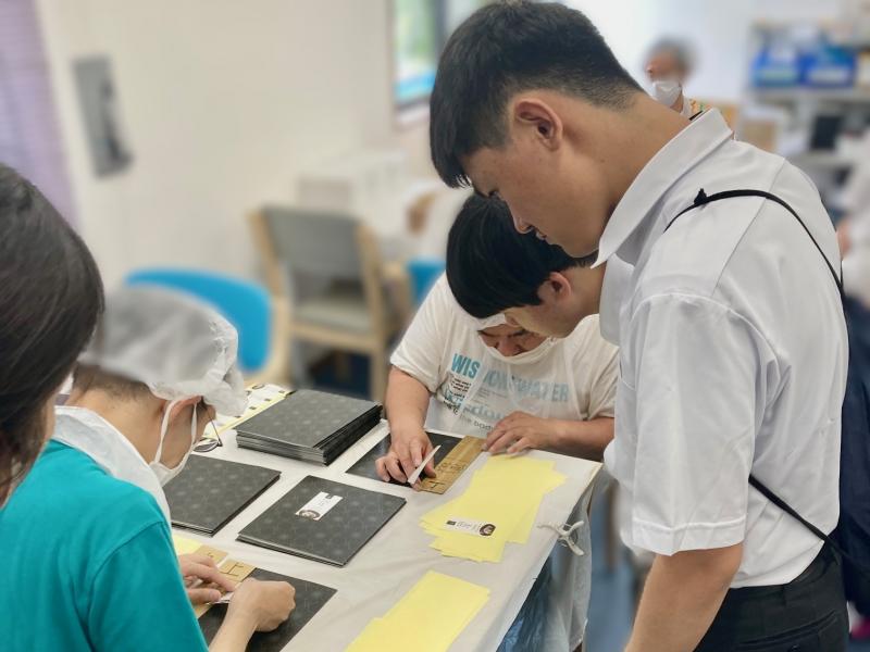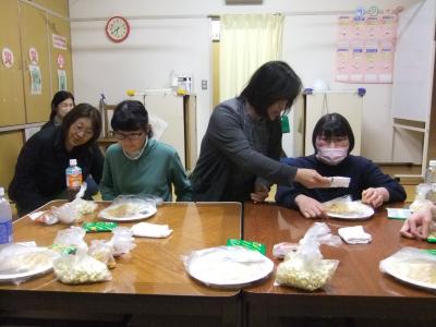 また、就労継続支援B型のハスネテラスで昼食をとりながらホールで働く利用者の様子を見学し、午後は様々な作業を請け負うB型のエンデバーメイトを見学しました。