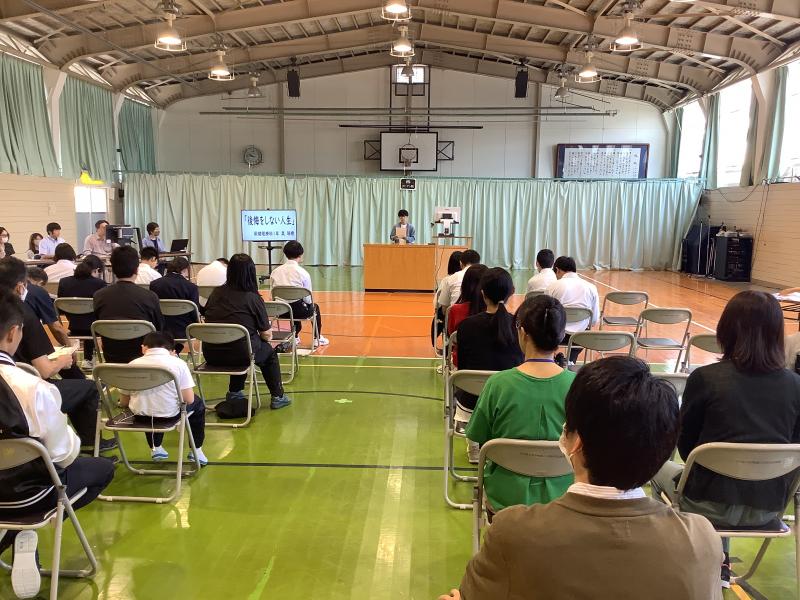 中学部、高等部から10名の弁士が参加しました。当日を迎えるまで、一人一人が主張したいテーマを決め、自分と向き合い論旨を考えてきました。当日はどの弁士も力強く、落ち着いて発表し、今まで練習してきた成果を出せたようでした。また、他の弁士の弁論を聞くことで様々な考え方に触れ、視野を広めるきっかけにもなりました。
