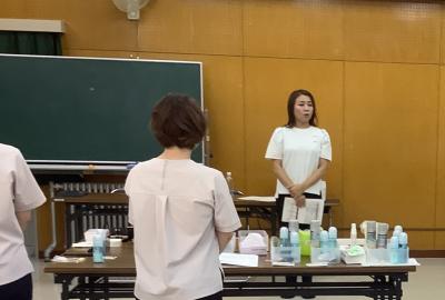 マッサージのコーナーでは、マッサージ用のいすに座っていただき、肩背部の10分クイックマッサージを体験していただきました。マッサージを体験された方からは「気持ちよかった」「肩が楽になった」という感想をいただき、日頃実技を頑張っている生徒の励みになりました。