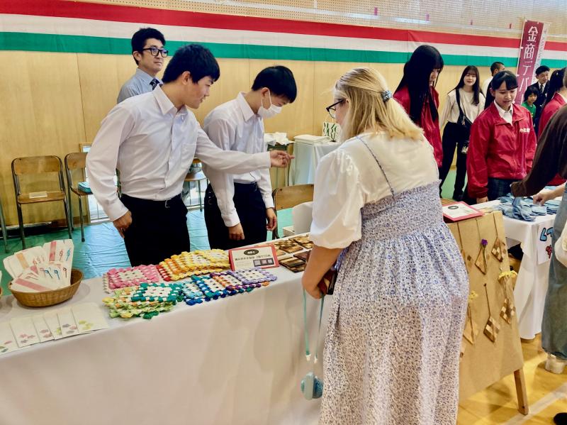 金沢商業高校の生徒や地域の方々に商品の説明を行ったり、販売を行ったりしながら交流を深めました。