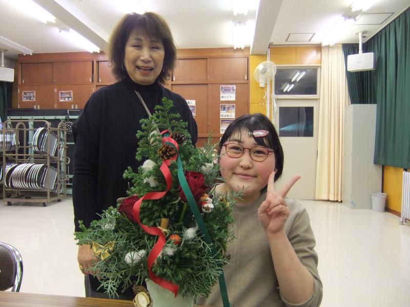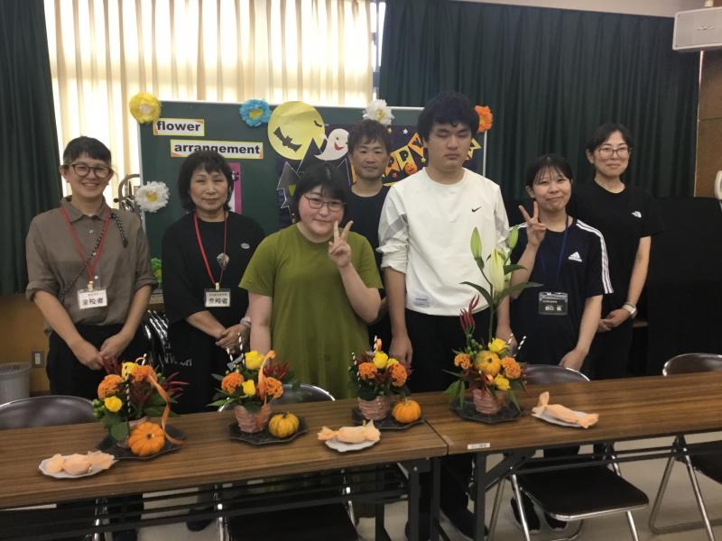 舎生は花の香りや木の感触を楽しみながら、フラワーアレンジメントを楽しんでいました。初めて参加した舎生から「楽しかった!」という声が聞けました。