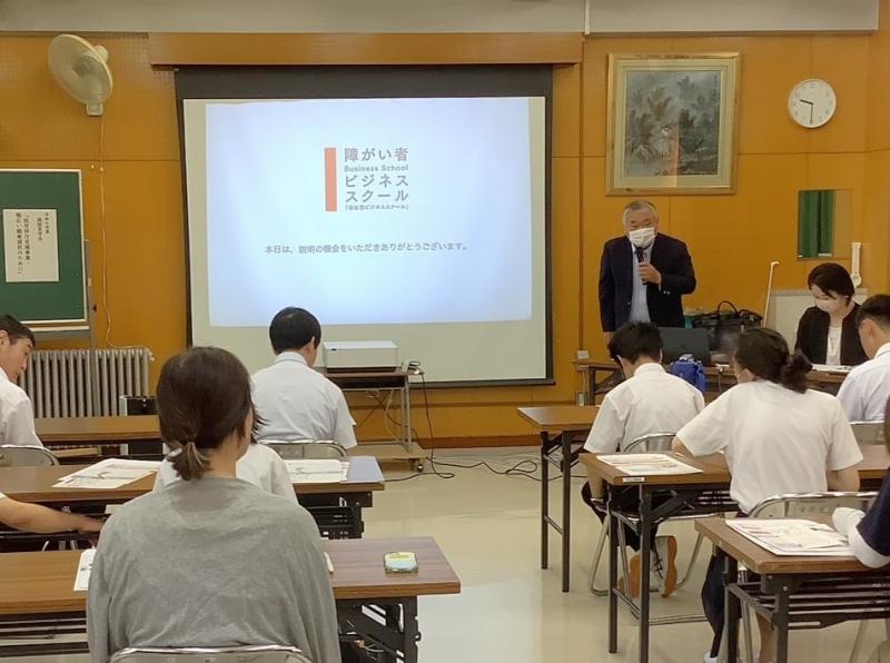障がい者ビジネススクール金沢校代表理事の藤井誠様から就労移行支援事業所の概要やビジネススクールの取り組みについて紹介していただきました。