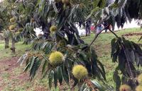 栗は熟すと自然に落ちるそうで、栗園の地面にはたくさんのいがが!参加者の皆さんは、軍手をはめて、地面に落ちているいがを一つひとつ確かめながら、夢中になって栗を拾いました。