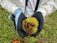 10月4日(土)に開催された育友会お楽しみ会の栗拾い体験は、開始直前まで小雨が降るあいにくの天気でしたが、栗拾いがスタートすると同時に雨がやみ、豊かな自然の中での栗拾いを楽しみました。