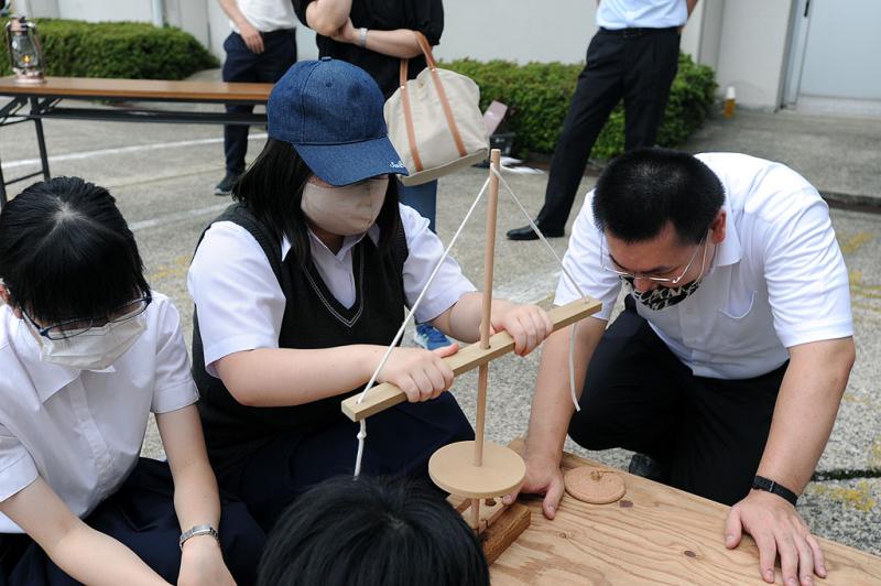 まいぎりで、火を起こし、その火をランタンに入れました。