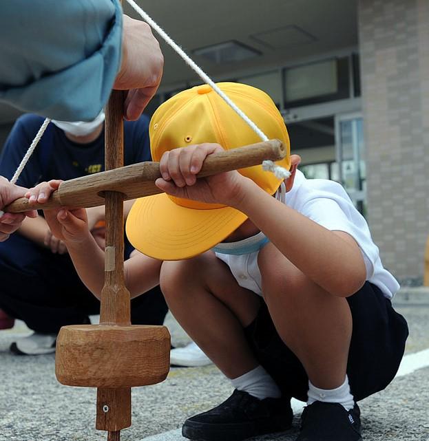 採火式が終わった後も、自分も火を起こしたいと、何人もの児童生徒が、まいぎりでの火おこしを体験しました。
