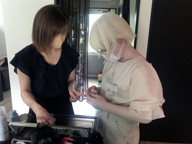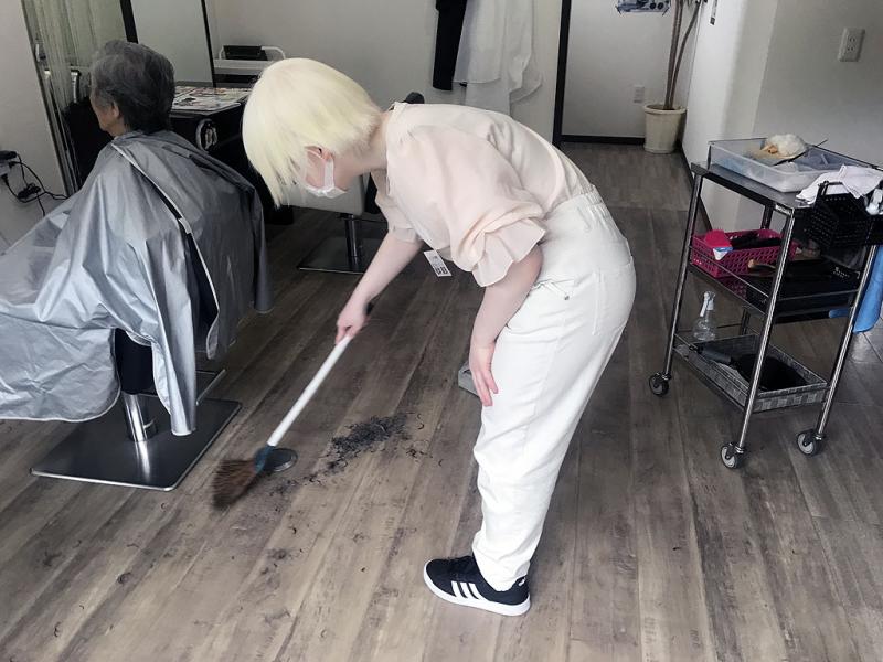 美容室での体験をした生徒は、店内の清掃やパーマに使用するロットの受け渡し、お客さんの髪をシャンプーしたり、カットの練習などをさせてもらいました。優しく教えてくれるお店の方々に、次第に笑顔も見られるようになっていきました。