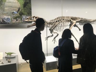 動く恐竜の模型の迫力に驚きました。化石や模型、パネルで様々な時代の学習をしました。