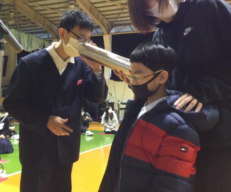 会が始まると、1年生はゲームの説明、3年生は総合司会をがんばりました。6年生はみんなに感謝の気持ちをこめ、楽しいクイズとヴァイオリンの演奏、お礼の挨拶を立派につとめました。6年生の希望で、3人で「キラキラ星」ならぬ「キラキラ盲学校」の合奏を楽しみ、素敵な思い出の1ページを作ることができました。