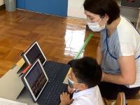 小学部では、まず、ZOOMを用いた体調確認から学習支援が始まっていきました。次第に参加する児童の数も増え、やがて合同朝の会、そして各教科へと活動の幅が広がりつつあります。画面越しですが、子どもたち、そして子どもたちを見つめる教員ともに笑顔がこぼれています。