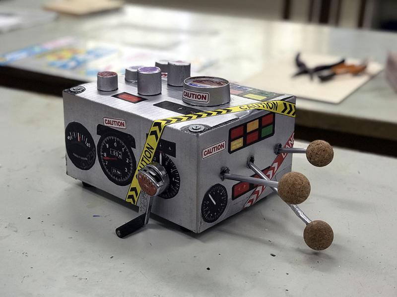 箱を銀色に塗って、メーターやランプなど計器の画像をカラー印刷してペタペタ貼って…