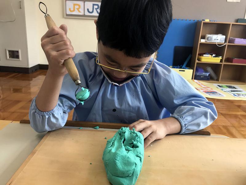 切り糸やかきべらをつかって、ねん土をさまざまな形にかえながら作品つくりを行う活動です。
