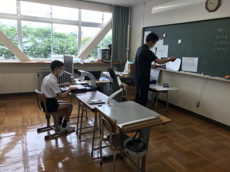 今日は登校の際、健康状態を確認した後、「新しい生活様式」に則って、それぞれの教室で授業が進められました。