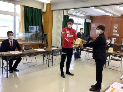 ツエーゲン金沢と㈱キリンビバレッジが共同で、ツエーゲン金沢の試合会場などでサポーターの方々より集めたベルマーク6500点あまりを、本校に寄贈してくださいました。12月22日にその贈呈式がありました。児童生徒の学習に有効に使わせていただきます。ありがとうございました。