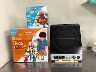 今年度は<IHヒーター><図形キューブつみき><くみくみスロープ>を寄付していただきました。学校再開後、教育活動に使わせていただきます。ご支援ありがとうございました。