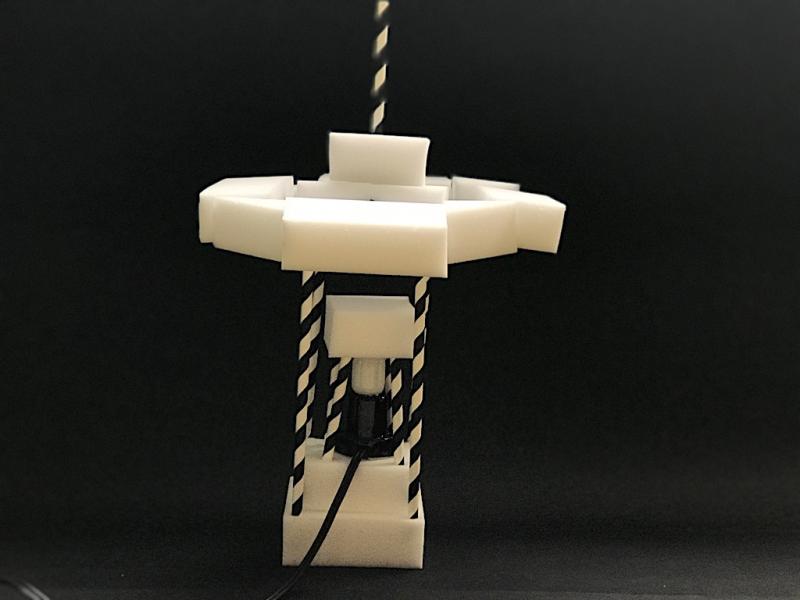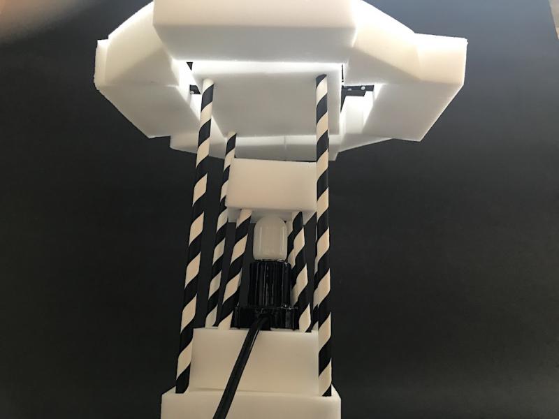 自由な形に切り取ったスポンジとストローを組み合わせ、作品を作りました。教員との会話から発想をどんどん広げ、楽しみながら作ってくれました。