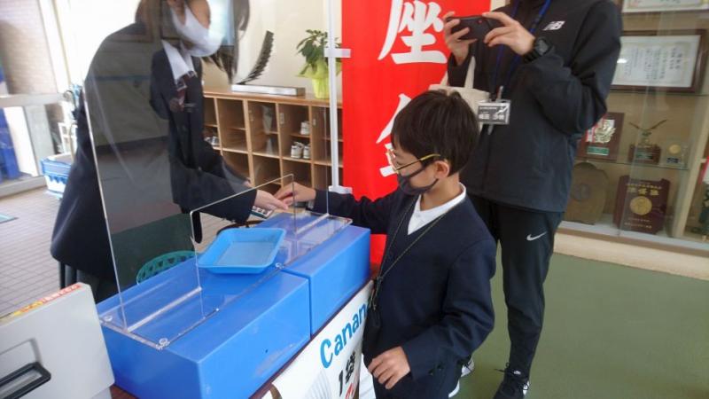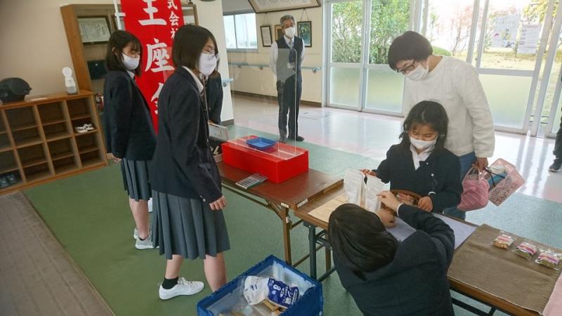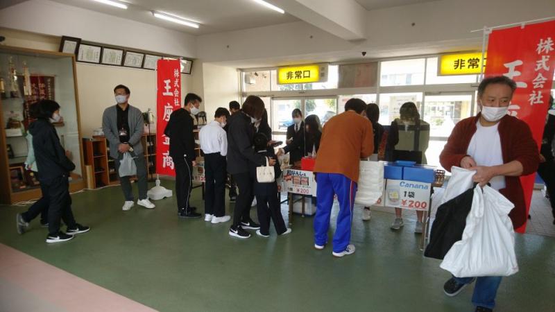 本校のお隣の金沢商業高校の、大人気店「(株)王座金商 」の商品販売会がありました。開店前から大行列ができ、小学生から高等部生徒、職員まで、買い物を楽しみました。