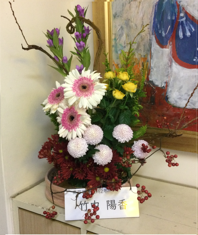 石引の花店「おはなばたけ」様にはいつも、たくさんのお花の寄付をいただいています。その花で児童生徒は生け花体験、フラワーアレンジメント体験をたのしんでいます。おかげさまで、どんどん腕があがってきました。