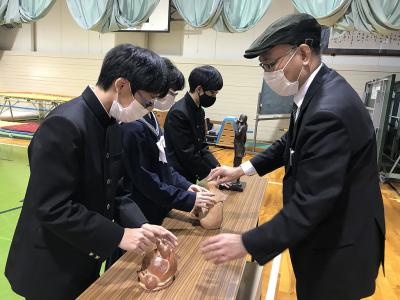 12月7日(月)、本校体育館において「ふれてみる彫刻展」が行われました。ふだんは触る機会の少ない美術作品に直接触って観賞する機会をもつという会です。
