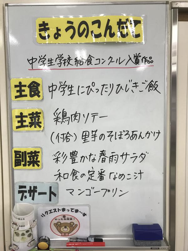 学校給食の献立作りをとおして、食事の重要性や地域の食材の豊かさ、食文化を再認識し、望ましい食習慣の形成を図るために行われる中学生学校給食献立コンクールが今年も開催されました。