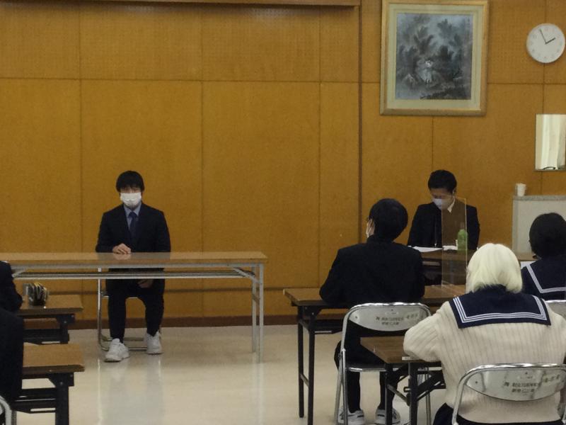 本校卒業生の方です。生徒の質問に丁寧に答えもらいました。年代の近い上坂さんの前向きな姿が、生徒の目標になったと思います。