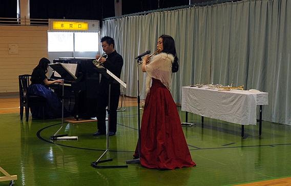 アンサンブル金沢のトランペット奏者 藤井幹人さんが、本校で「ふれあいコンサート」を開催してくださいました。奥様のフルート奏者・ソプラノ歌手 藤井ひろみさん、ピアニストの川岸香織さんも共演くださり、心豊かな時間をすごせました。
