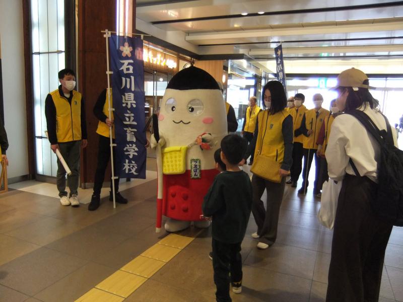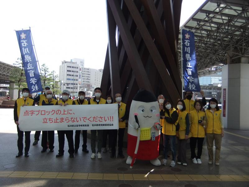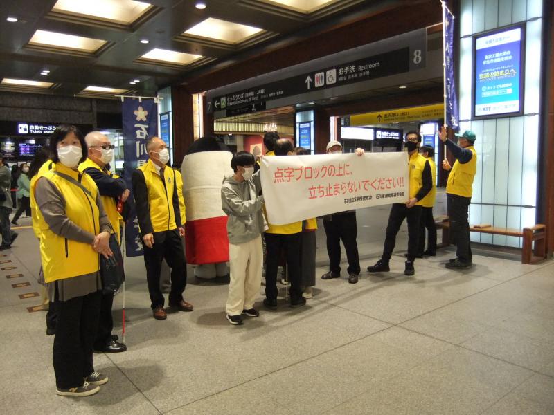 今年度も、「点字ブロックの日」にちなみ、視覚障害者協会の方々と一緒に金沢駅で啓発活動を行いました。
