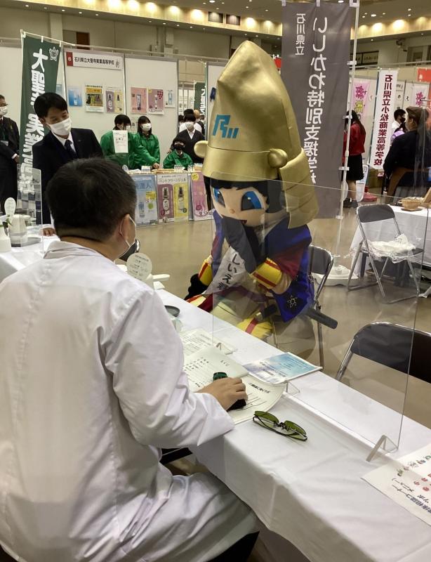 いしかわ産業教育フェアのマスコットキャラクター「としいえ君」も相談を受けに来てくれました。