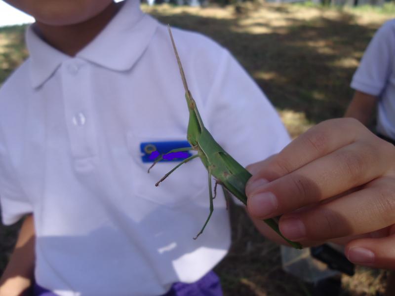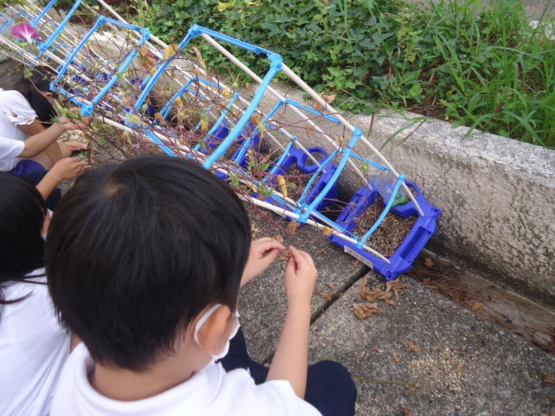 秋の虫をつかまえて飼いました。はじめはおそるおそる虫をさわっていた子も、世話をしているうちにだんだんかわいく思えてきたようです。