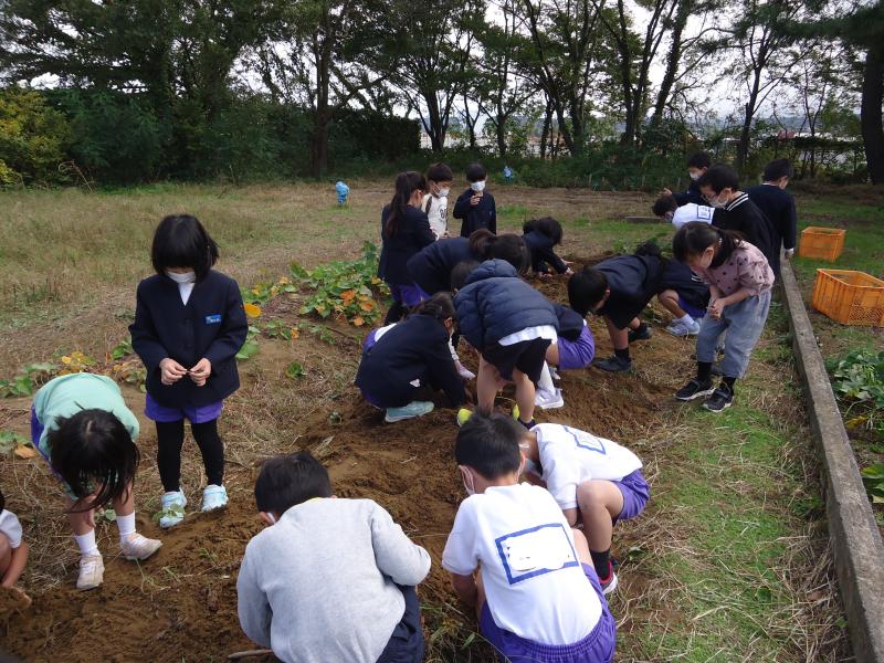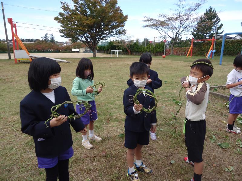 初夏に植えたさつまいもほりました。さつまいもは残念ながら豊作とはいきませんでしたが、つるを使ってリースも作りました。