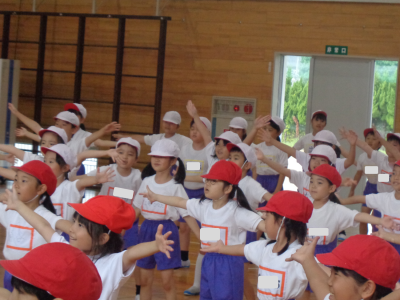 今日の体育の時間に、4年生に教えてもらいながら、おどってみました。