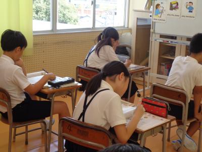 Englishルームでは、外国語の授業に取り組んでいました。ALTの発音をまねて元気よく英単語を練習したり、イントネーションの聞き取りに挑戦したりと、どの活動も意欲的に取り組んでいます。