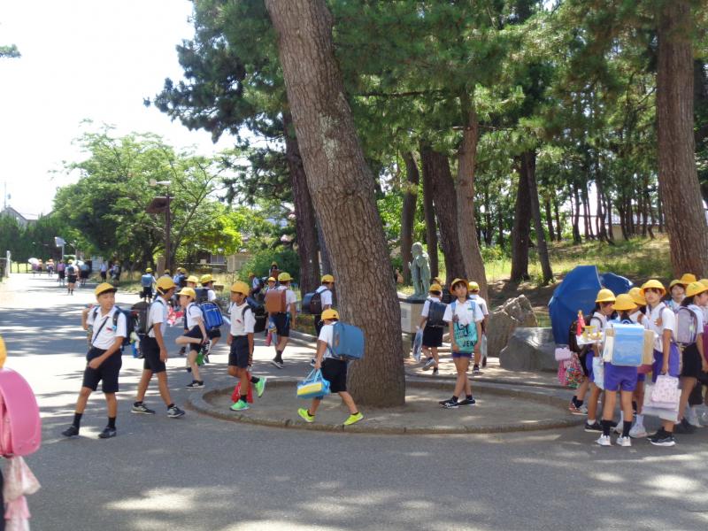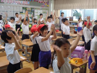 偶然、避難訓練の時間帯に来校していたお客様が、高学年の子が、低学年の子の手をつないであげて避難誘導していた場面を目にされたとのことで、素敵な子どもたちですねと褒めてくださいました。