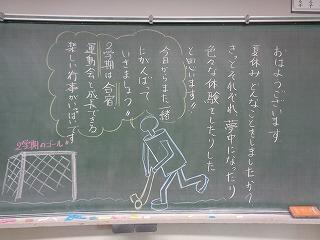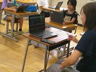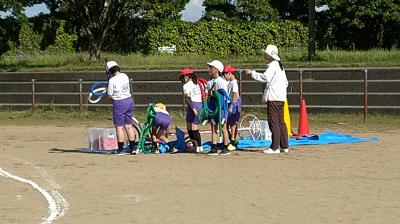 そのあと、日差しの下での練習となりましたが、13分ほどで切り上げて、日陰に戻った後の水分補給と冷房の入った教室でのクールダウンをしました。まだまだ暑い日は続きます。子どもたちの健康に注意しながらの練習内容を工夫していきます。