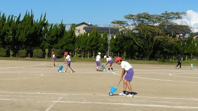 そして、午後からは、高学年による運動会の会場設営を行いました。