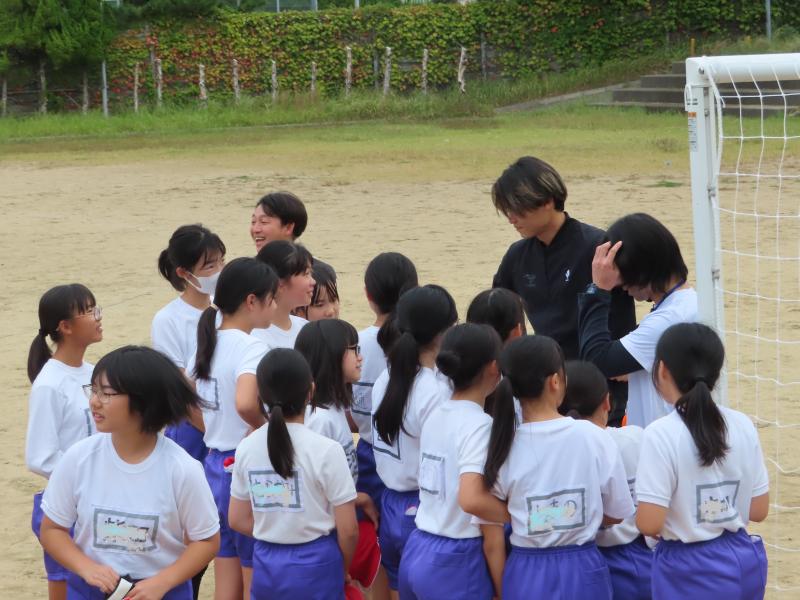 今回は、交歓会で審判としてお世話になる内灘フットボールクラブから、指導員の富沢さんとOBの上田さんに来ていただき、ゲームを通してルールや基本の動きを教えていただきました。上田さんは、あのツエーゲン金沢のゴールキーパーとして現役で活躍されている選手です。今日は、向小のみんなの激励に、お休みのところわざわざ来てくださいました。また、富沢さんも普段は内灘フットボールクラブの指導員として活躍されています。お二人とも、内灘町出身なので、今年度のサッカー交歓会のために力を貸していただけることになりました。