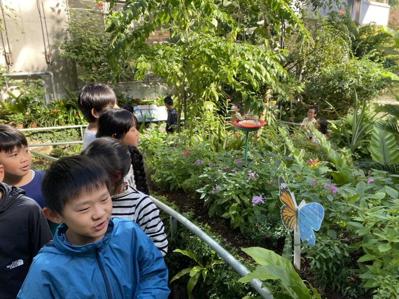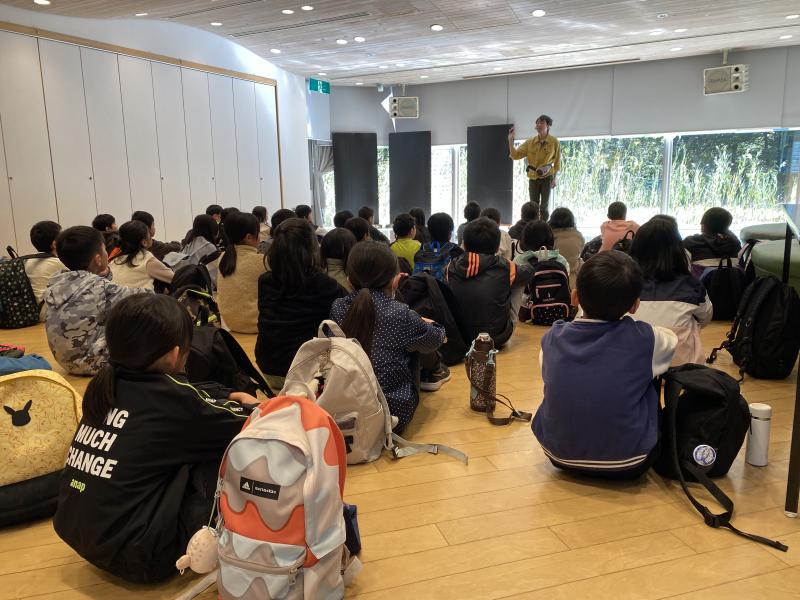 まずは職員の方から、珍しい昆虫を見せてもらったり、その生態について説明を受けたりしました。オオマダラの金色のさなぎやヘラクレスオオカブトなど、普段見られない貴重な昆虫を目の前で見ることができ、子ども達は興味津々でした。