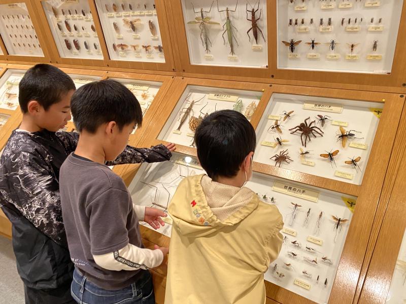 ふれあい昆虫館では、職員の方のお話を聞き、理科の学習内容を振り返りながらカブトムシやナナフシなど普段触れることができない昆虫に触れることができました。