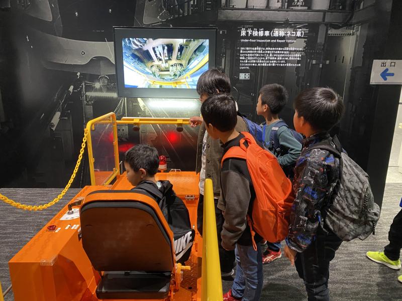 また、1階の「学びと体感エリア」にて、新幹線の仕組みについて展示を見て学んだり、実際のグランクラスのシートに座ったりと、さまざまな体験をしました。