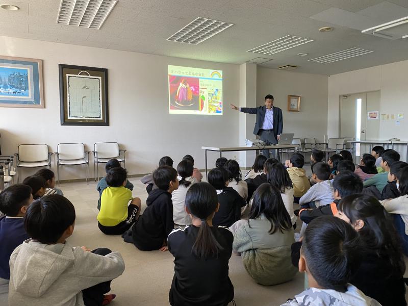 ここでは、会社についての説明を受けたり、実際に工場で働く様子を見学したりしました。身近なスーパーやコンビニ等で見かける商品が、実はオハラの商品であるということを知り、子ども達は驚いている様子でした。