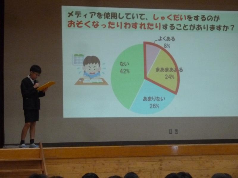 アンケートからは、メディアを長時間利用している人がいること、宿題や睡眠などに影響している人がいることなどが分かりました。