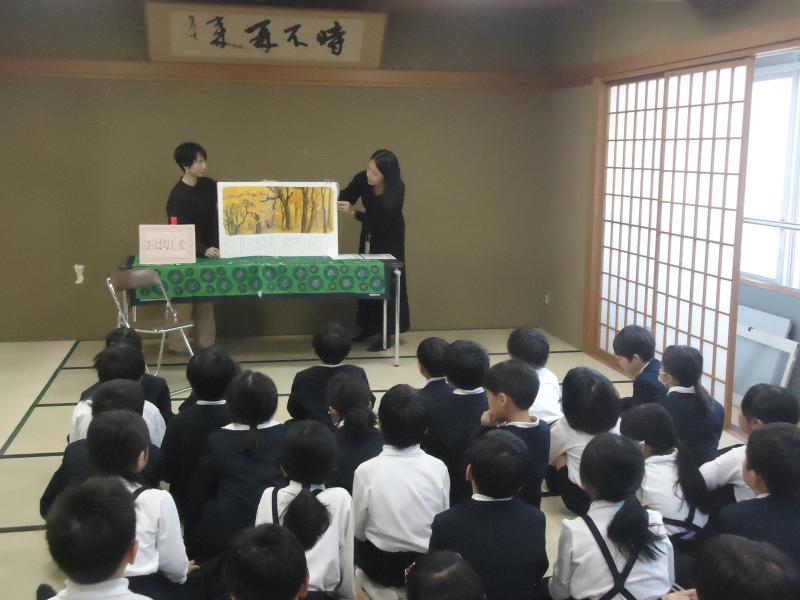 お話ボランティアグループ「がらがらどん」のみなさんによるお話会がありました。「平和」をテーマに選書していただいたお話を聞きました。子どもたちは、どのお話にも真剣に耳を傾け、聞いていました。そして、平和について考えるきっかけにもなりました。