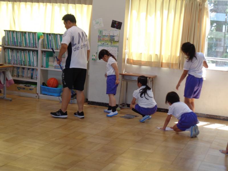 体ほぐしの準備運動から始まり、基本的なボールの投げ方や、バッティングの動きについて教えてくださいました。全員で野球に慣れ親しむ体験を楽しみました。