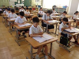 国語で「ちいちゃんのかげおくり」を学習している3年生。