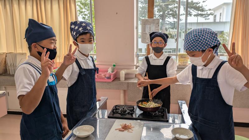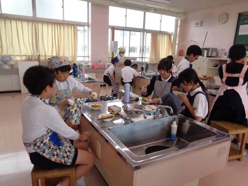 家庭科で調理実習を行いました。今回は、ご飯とみそ汁です。ご飯はお鍋で炊きました。お味噌汁は、煮干しでだしを取り、大根や油揚げ、ネギを入れてつくりました。みんな手順を確かめながら上手につくることができました。ご飯は、おこげもできていましたが、おいしくいただきました。
