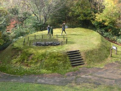 交流の家に行く前に、中能登町にある雨の宮古墳群の見学に行きました。36基の古墳からなる古墳群で、子どもたちは高台の古墳に登り、中能登町の絶景に浸りました。
