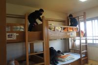 宿泊体験学習の2日目。6時の起床の音楽からスタートです。早速ベッドのシーツを剥がし片付けに入る子、なかなか起きられず友達に起こしてもらう子、洗顔をしてすっきり気分になる子など、それぞれの朝のスタートでした。一日お世話になった館内の色々な場所を分担して掃除をし、朝ご飯。