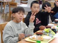 英語の授業では、台湾の小学生に日本のおいしい料理を伝える学習をしていました。自分のお気に入りのメニューを事前に調べ、おいしさが伝わるように工夫して英語で表現していました。