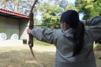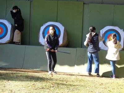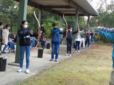 おいしい朝ご飯を食べて昨日の疲れも癒やされ、午前中の選択プログラムに参加します。自分たちで決めた「アーチェリー」か「ディスクゴルフ」のグループに分かれての活動です。初めは難しくなかなか上手にできなくても、だんだんコツをつかんで充実感を味わったプログラムとなりました。
